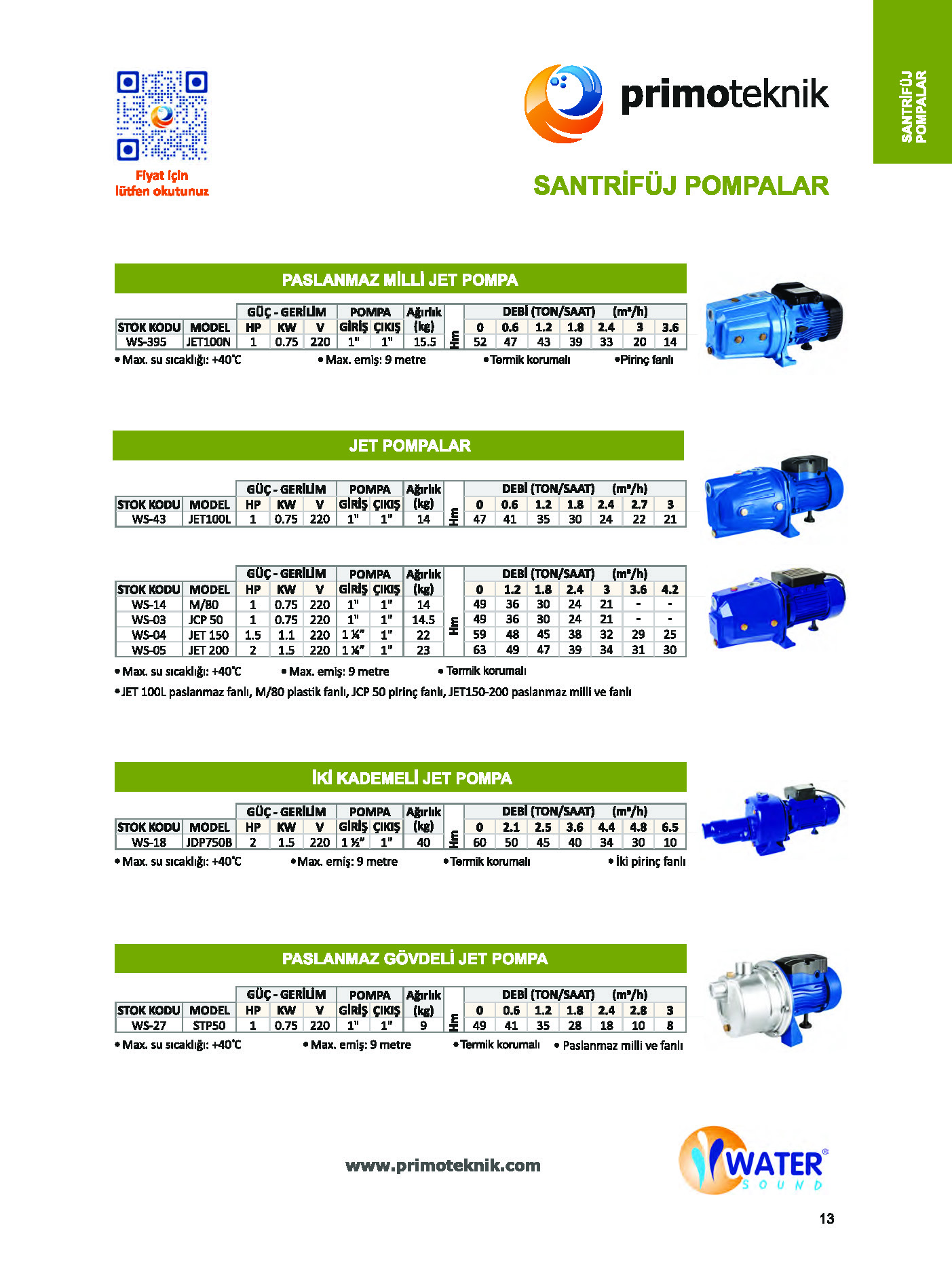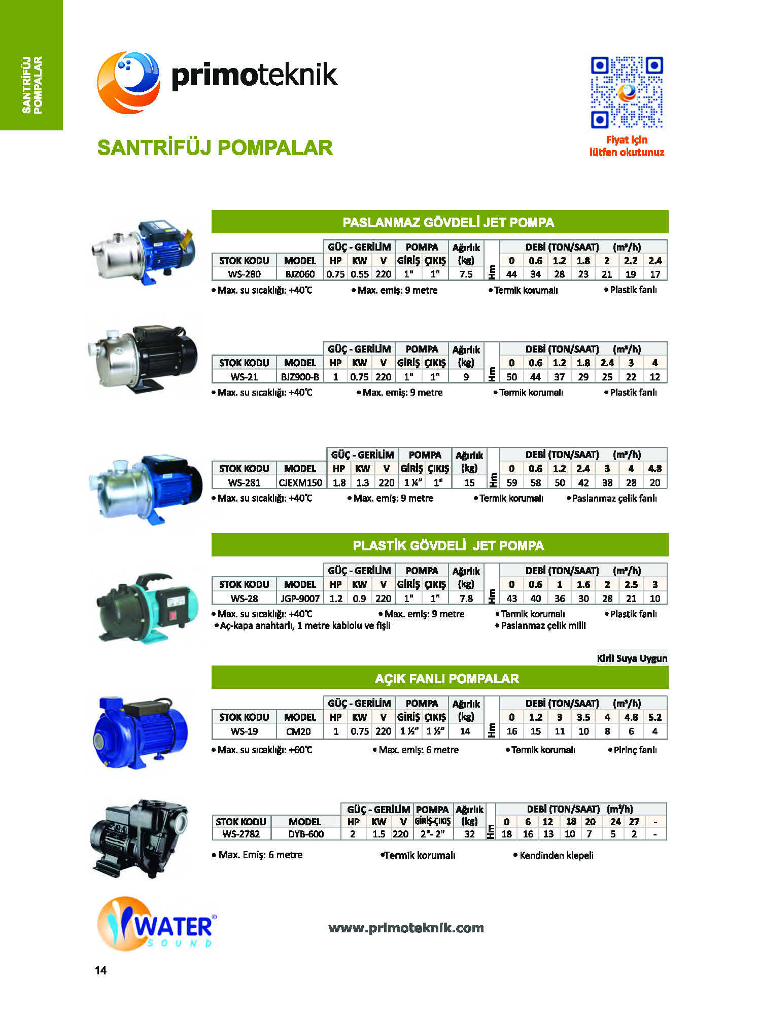 Santrifüj/Drenaj/Sirkülasyon/Özel Pompalar ve Domestik Hidroforlar